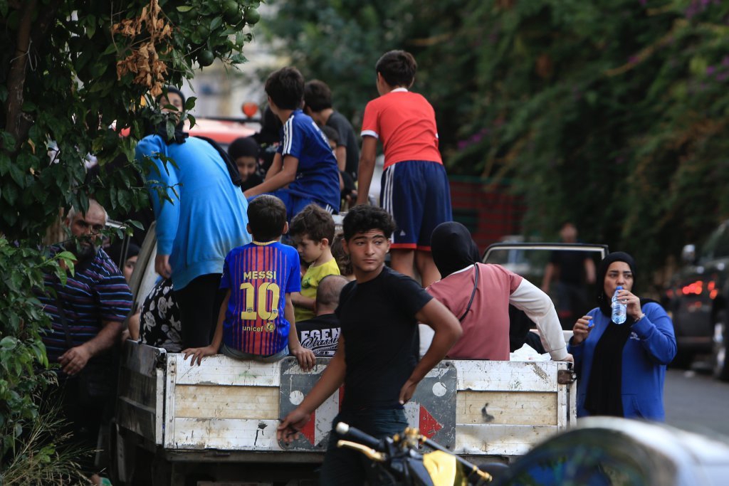 9月23日,在黎巴嫩南部城市西顿,一些黎巴嫩居民乘车逃离家园,向安全地带转移。