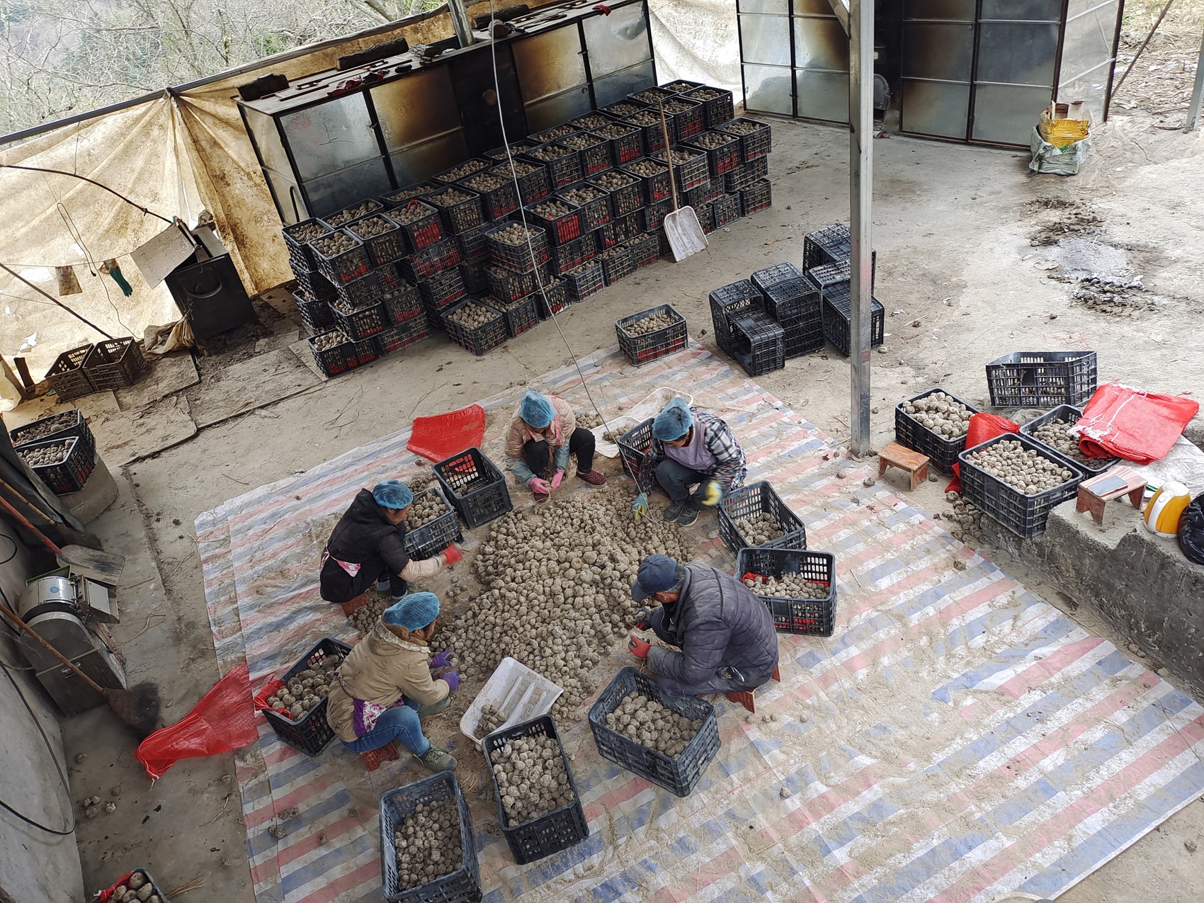 通江县返乡人员创业开办公司,图为该公司工人正在筛选优质魔芋。