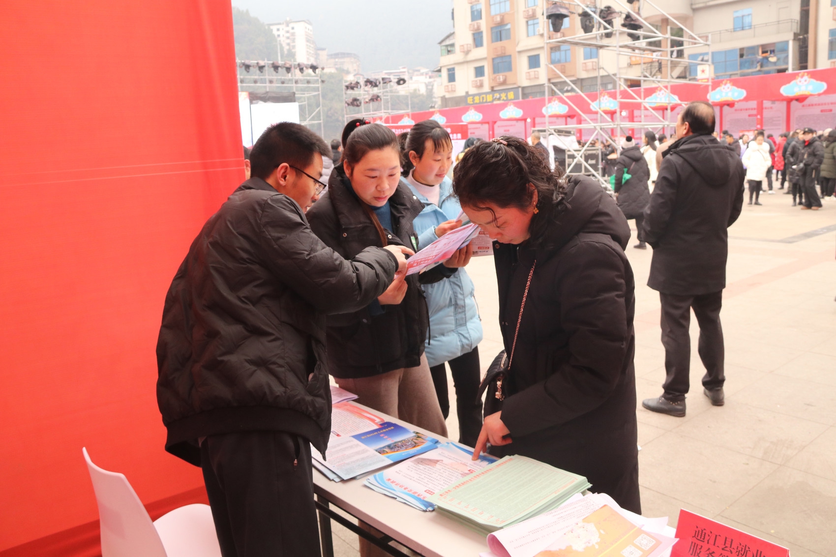 巴中市人社局定期举办公共就业招聘活动,为群众宣传解读返乡创业政策。