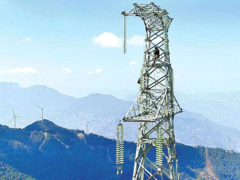腊巴山风电200kV输电线路施工。 谢刚 摄