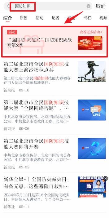 在川观新闻首页顶部搜索框输入:“国防知识”,点击活动链接即可参与。
