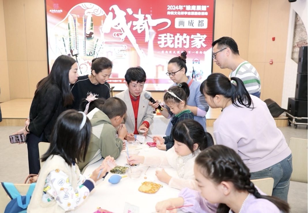 10月7日,成都市文化馆“雏鹰展翅”传统文化研学志愿服务活动迎来了“成都我的家—画成都”活动。参与者在非遗传承人的带领下,开启非遗技艺体验,在细微之处描绘烟火长卷,在毫厘之间尽显技艺之美。