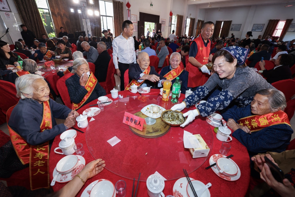 当日,浙江省杭州市临平区文化特派员走亲启动仪式暨塘栖镇河西埭村迎重阳孝心节“孝心村宴”活动在河西埭村文化礼堂举行。村里200多位70周岁以上的老人齐聚一堂,活动现场还有志愿者提供义务理发、量血压等便民服务。