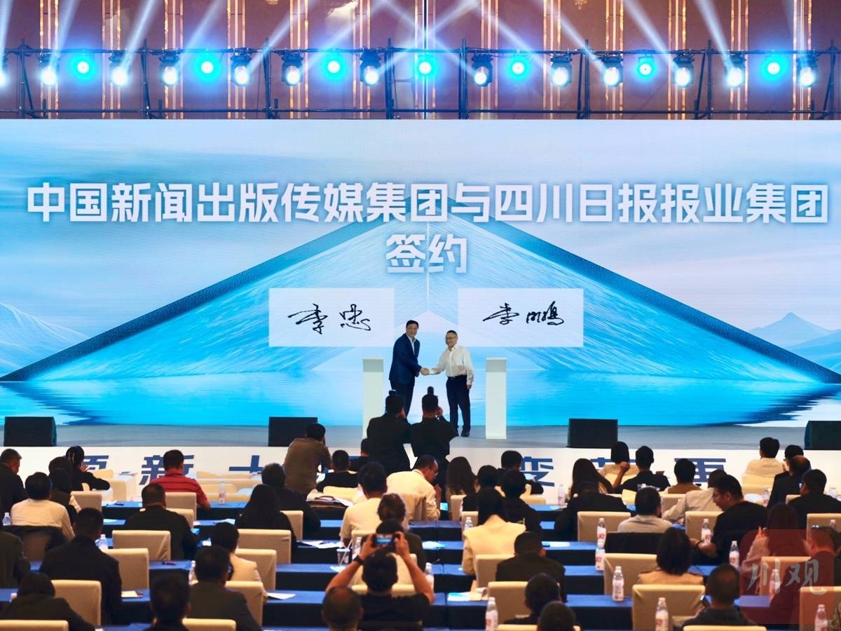 当天,四川日报报业集团与中国新闻出版传媒集团正式签约,标志着两大集团将共同开展全链路国际传播标准化业务;川观新闻与芒果TV、腾讯云、达观数据、五粮液、比亚迪等多家单位签署“媒体生态合作共建计划”。