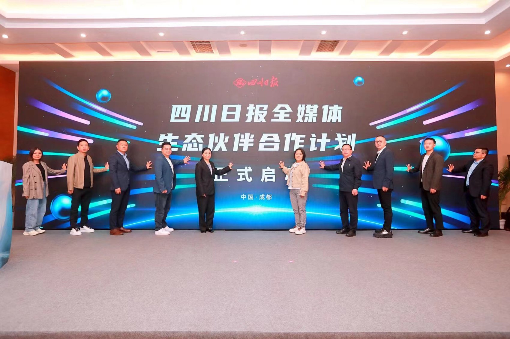 为深入推进四川日报全媒体与各大品牌全面合作,推进“智媒+品牌”营销传播创新,在活动现场,川报全媒体与近百家品牌共同启动“四川日报全媒体生态伙伴合作计划”,并邀请五粮液、泸州老窖、唯怡、岚图、比亚迪、蔚来汽车等9家企业代表一同登台见证。