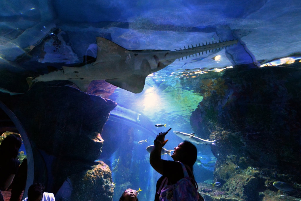 游客在泰国曼谷游览海洋馆