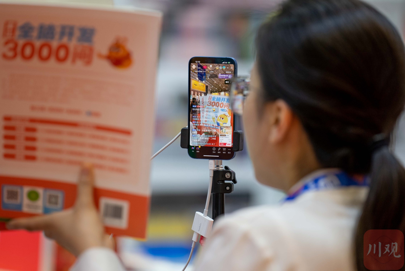 书展现场主播直播带货。