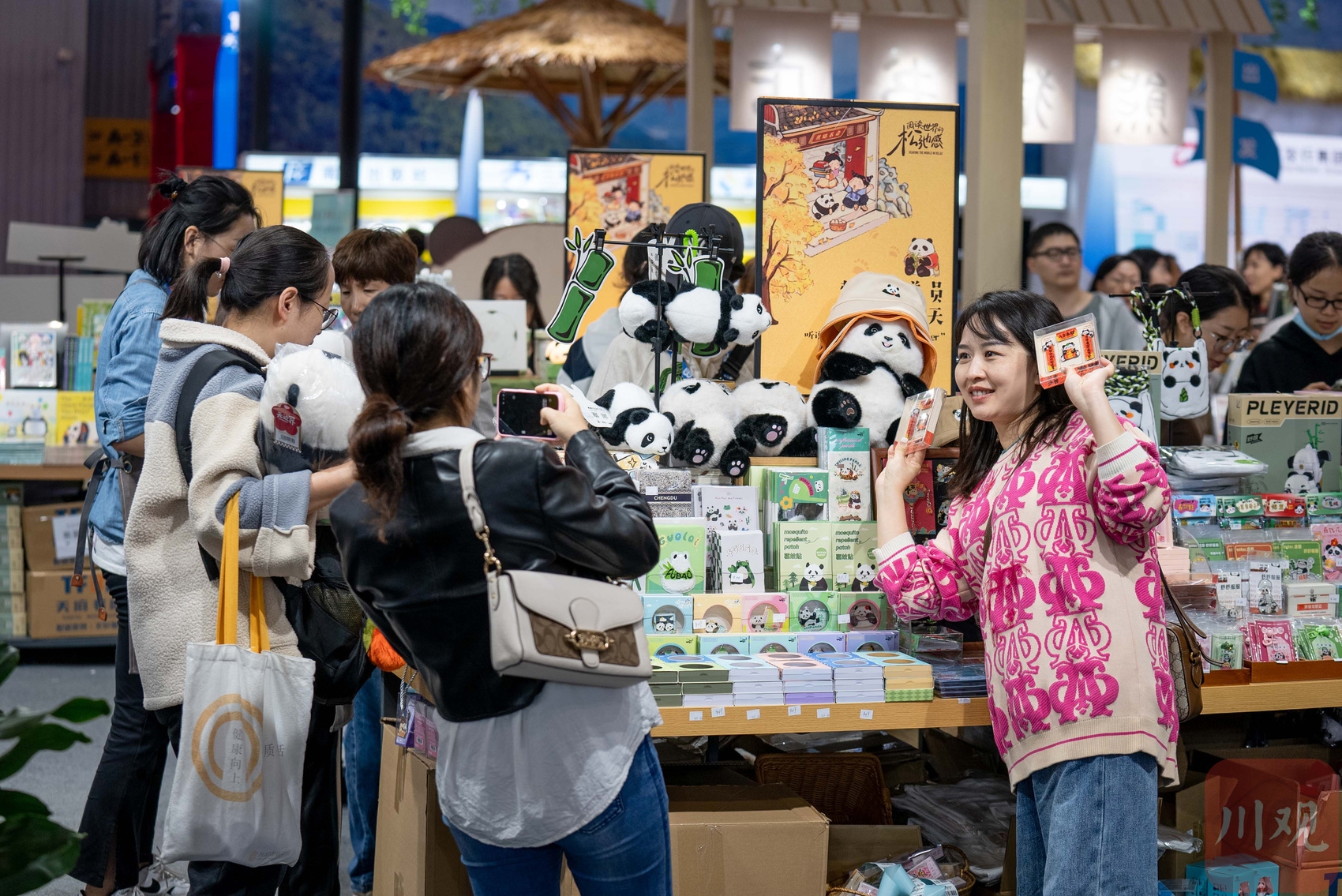 读者在书展现场的熊猫书店拍照打卡。