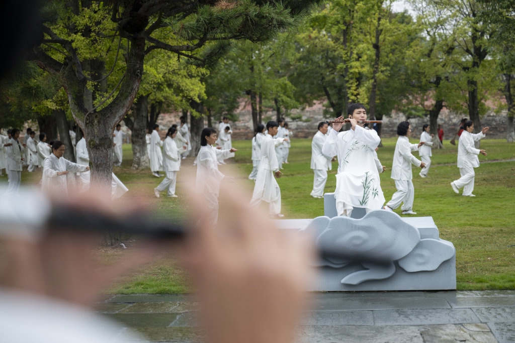 10月12日,太极爱好者在开幕式上表演。