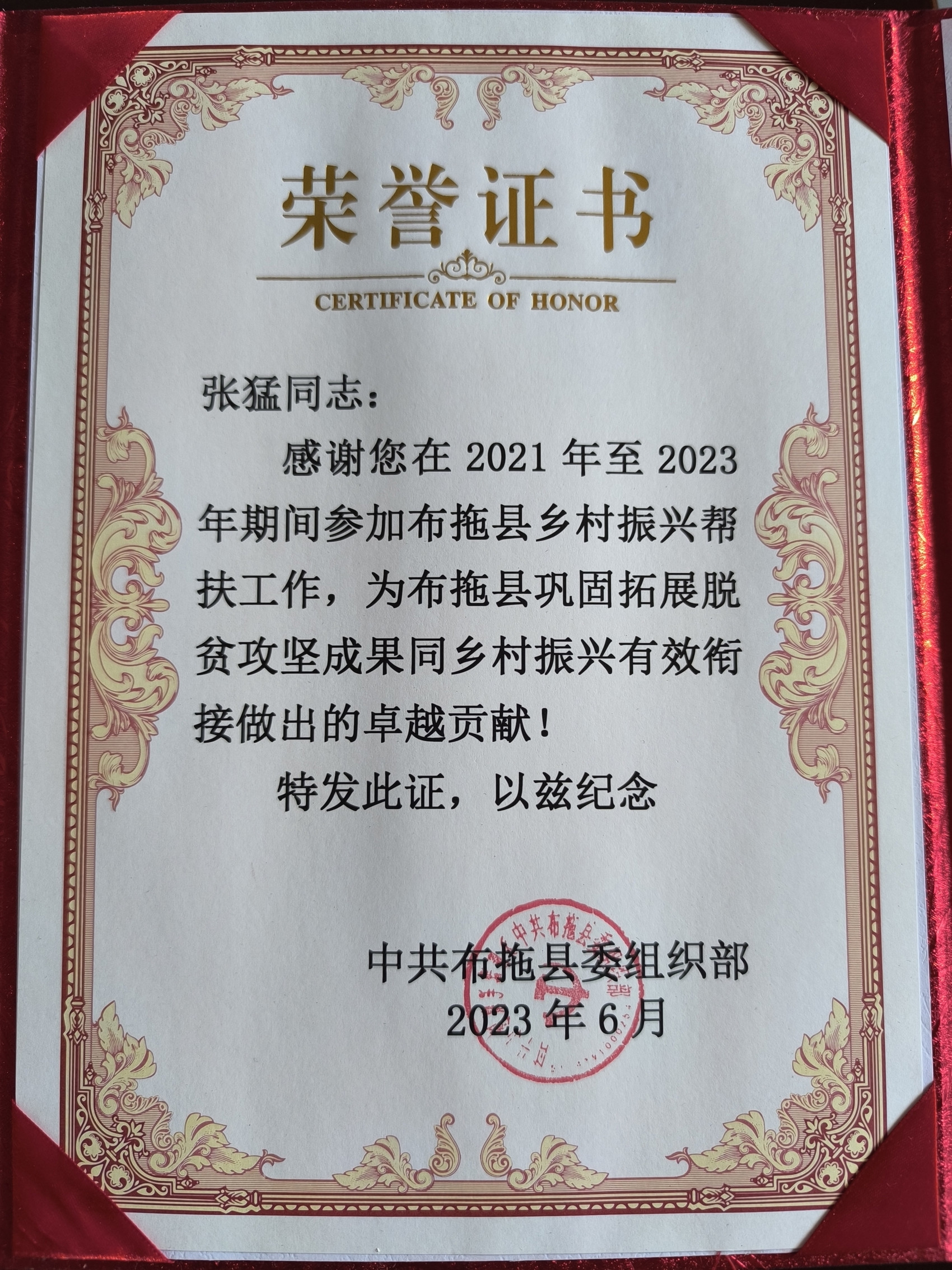 2021年,浙商银行成都分行党委决定选派张猛到大凉山担任驻村第一书记。8月,张猛背上行囊前往凉山彝族自治州布拖县龙潭镇红旗村,开展驻村工作;两年后,张猛又被派往基只乡老古村,这一驻守又是三年。