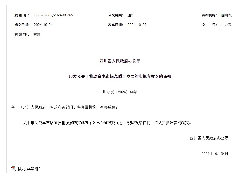 10月28日,记者从四川证监局获悉,为发挥资本市场功能作用,服务保障四川经济社会高质量发展,四川证监局会同四川省委金融办起草《关于推动资本市场高质量发展的实施方案》(以下简称《实施方案》),由四川省政府办公厅近日正式印发。