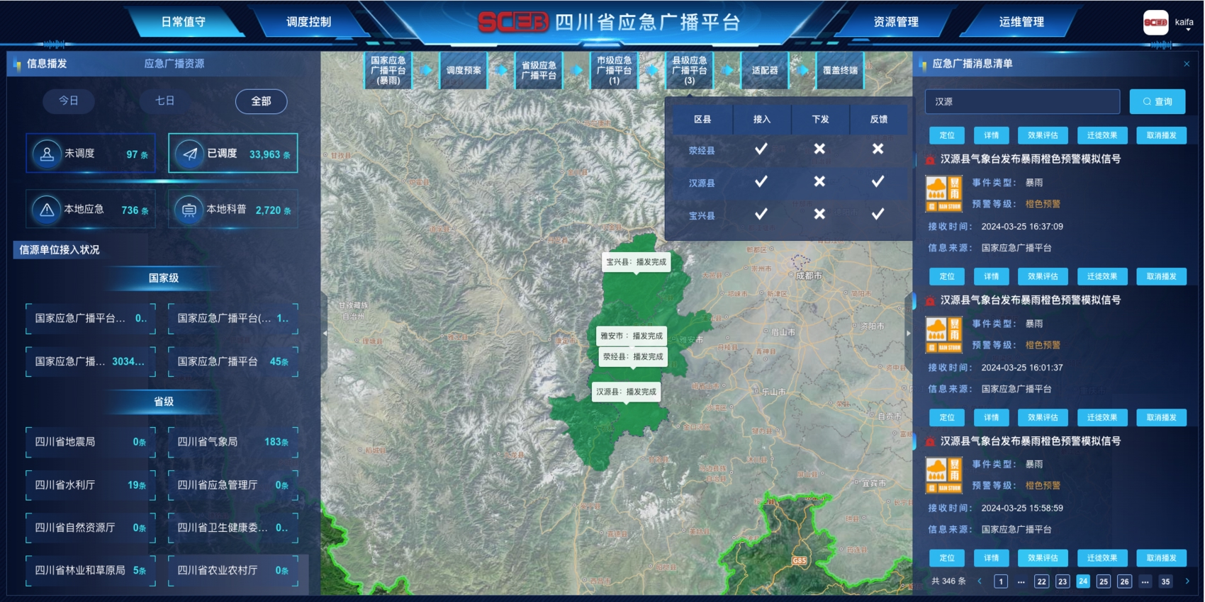 打通应急信息传播“最后一公里”,四川应急广播平台还完成了与国家应急广播平台、应急管理厅、省气象局、省地震局等系统对接,提升信息发布和传播能力。