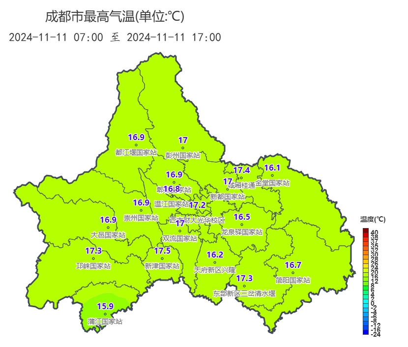 24小时内,盆地最低气温:14~16℃;最高气温:17~20℃