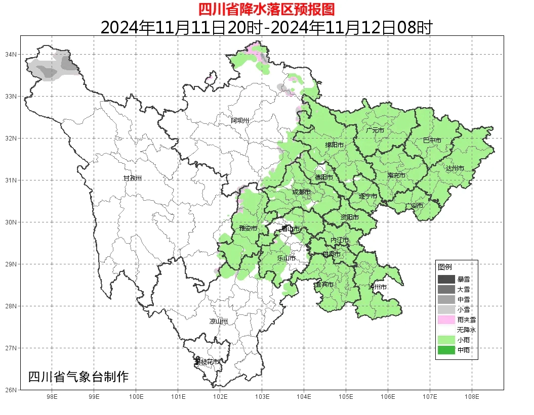 明天白天:盆地北部阴天有小雨,其余地方阴天间多云有分散小雨;川西高原和攀西地区晴间多云。