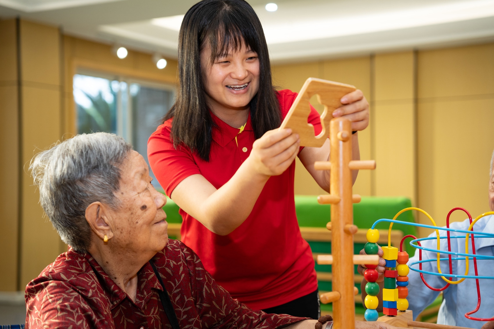 康复训练间隙,大家唠起家常,赵大爷笑着说:“住在这个福利院,比跟子女生活在一起还安逸。这里环境舒适,开设有多种兴趣班,有同龄人陪伴,还有你们这些公益人士对我们的关爱,我在这住得很舒适。”