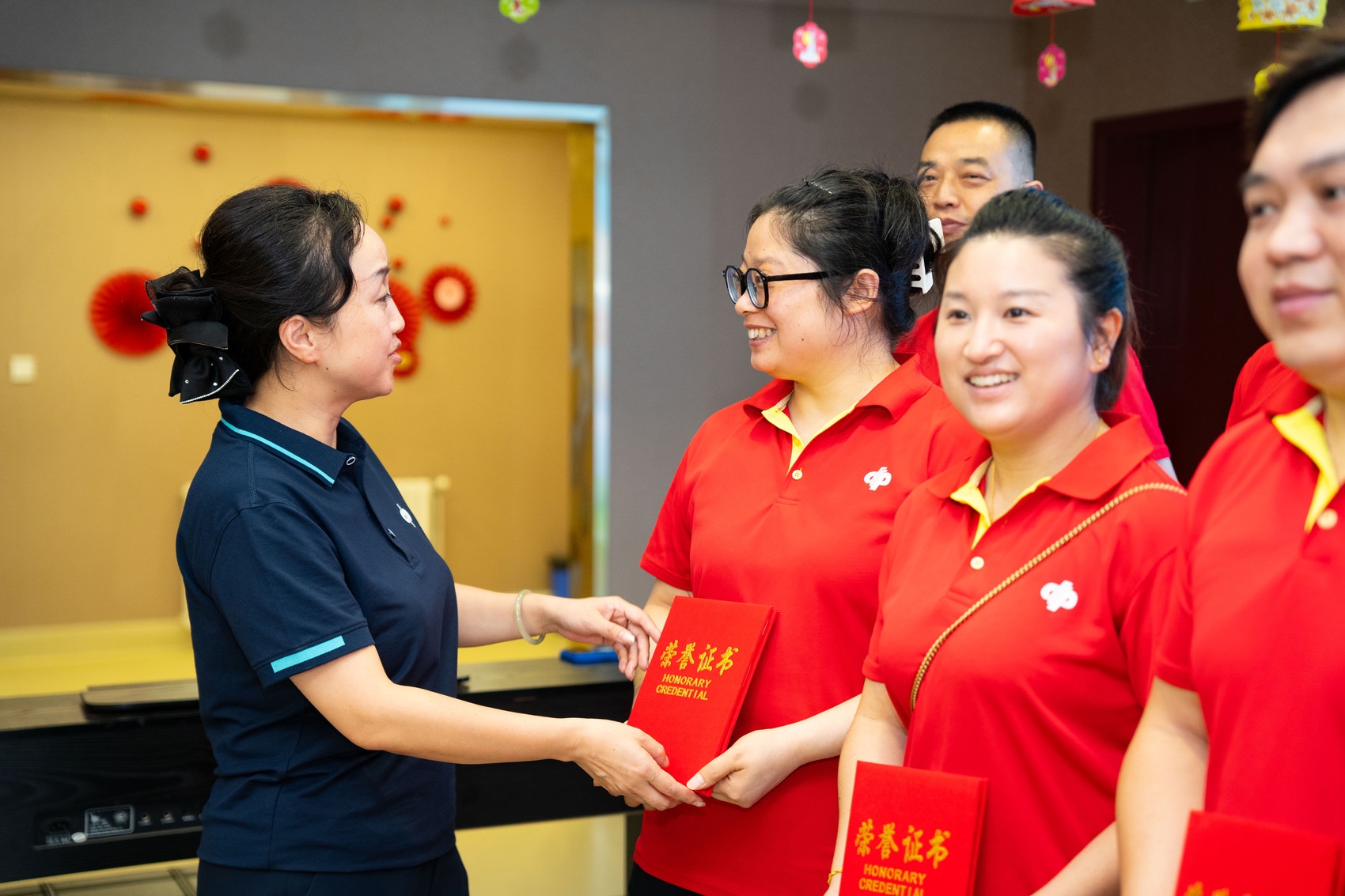 在福利院工作人员带领下,慰问团有序地进行参观慰问。康复训练室里,一批老人正在福利院工作人员的指导下进行康复训练。83岁的赵大爷正在使用器械训练,眼看身着红色工作服的福彩代销者走进来,赵大爷十分热忱:“快来快来,看看我使用器械训练的成效!”在工作人员和老人的盛情邀请下,大家纷纷走到老人身边,观摩老人展示康复器械的多种使用功能,小小的康复室内顿时充满欢快的氛围。