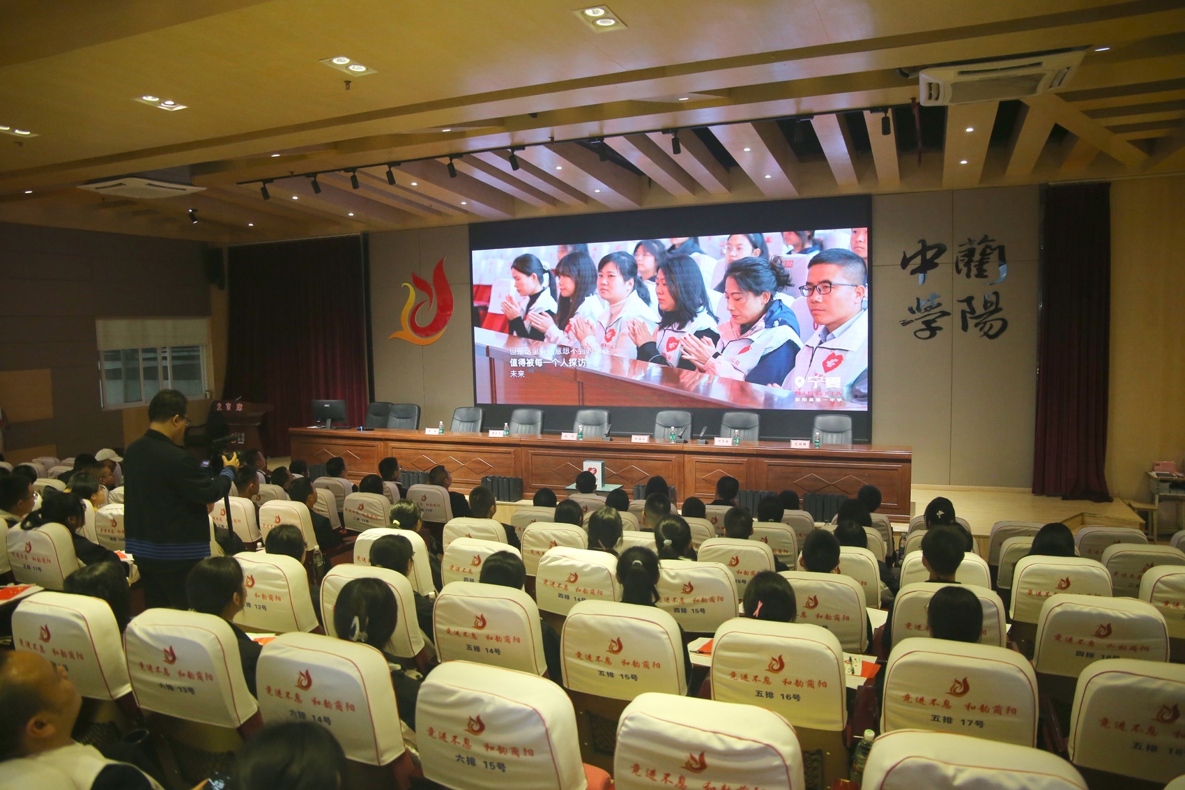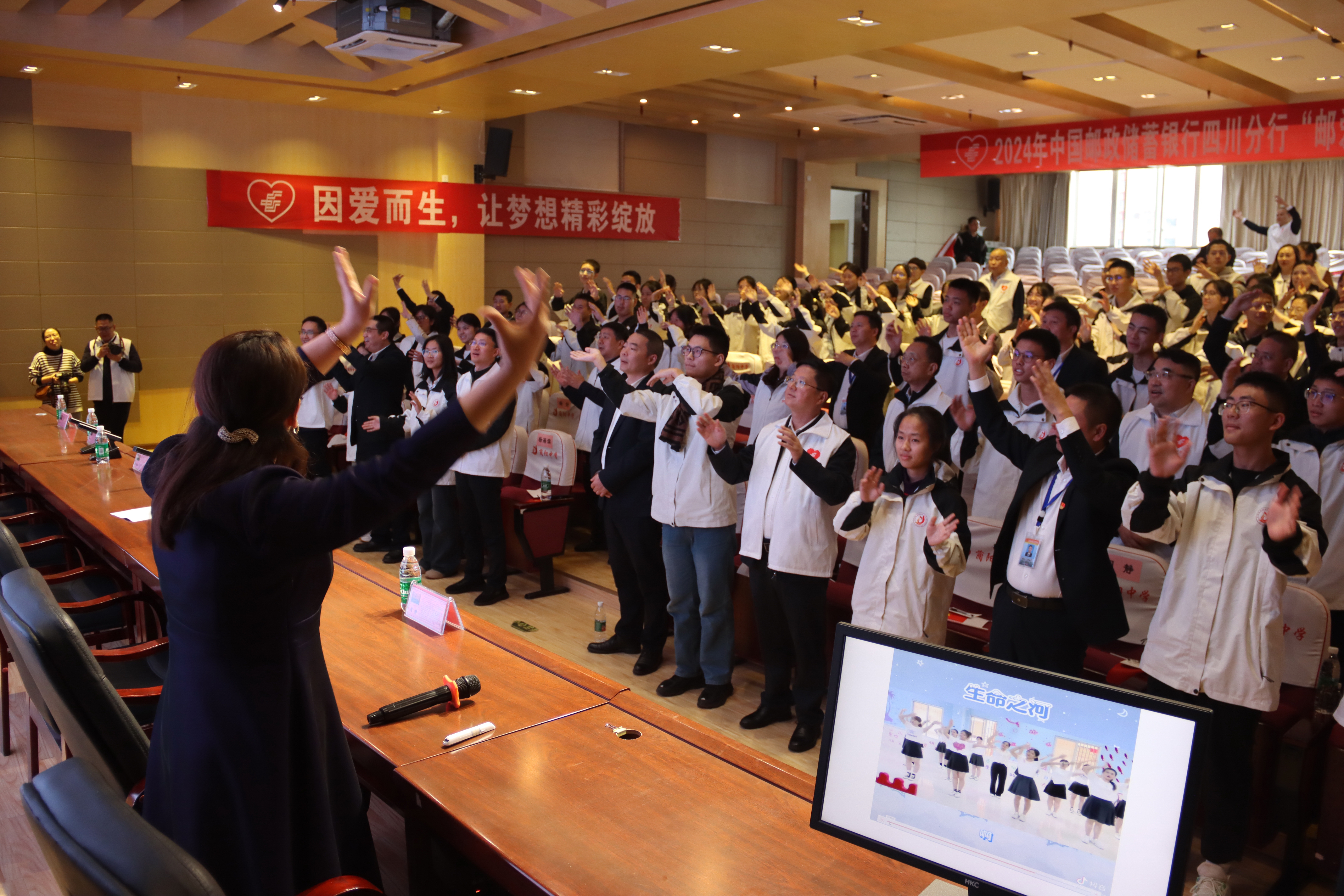 欢迎仪式结束,墙上大屏幕放映公益宣传片《邮爱的向往》,师生们在画面中重温“公益寻访”与蔺阳中学的“缘分”: