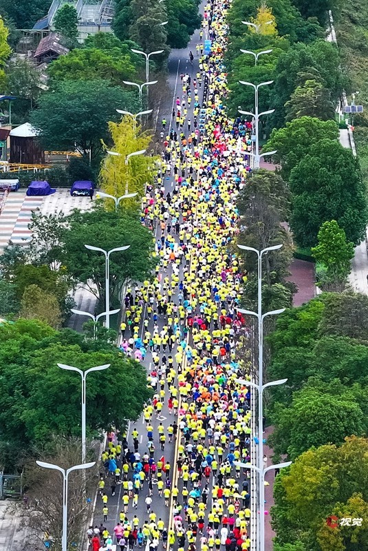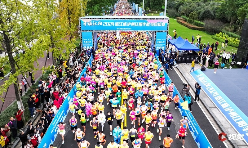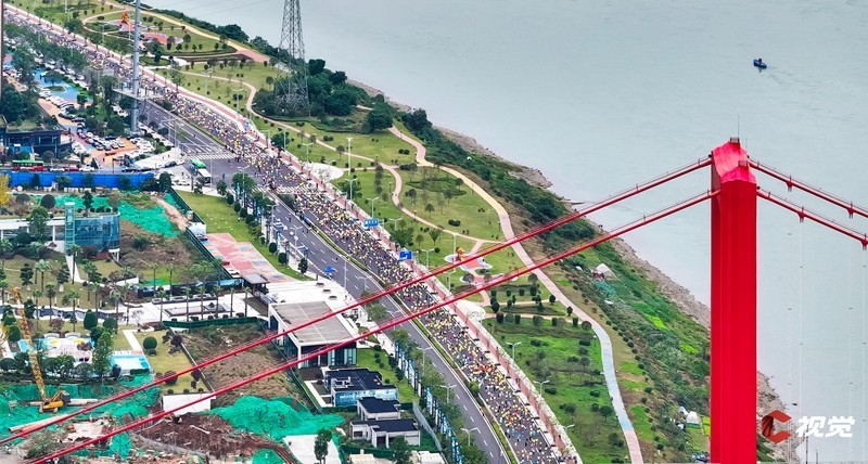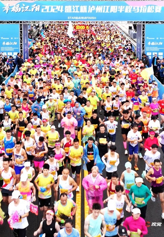 2024年11月17日,四川省泸州市江阳区张坝景区,马拉松参赛选手在比赛中。当日,泸州市江阳半程马拉松在张坝景区滨江路鸣枪开跑。赛事吸引来自云、贵、川、渝等16个省市地区的5000余人报名参赛。