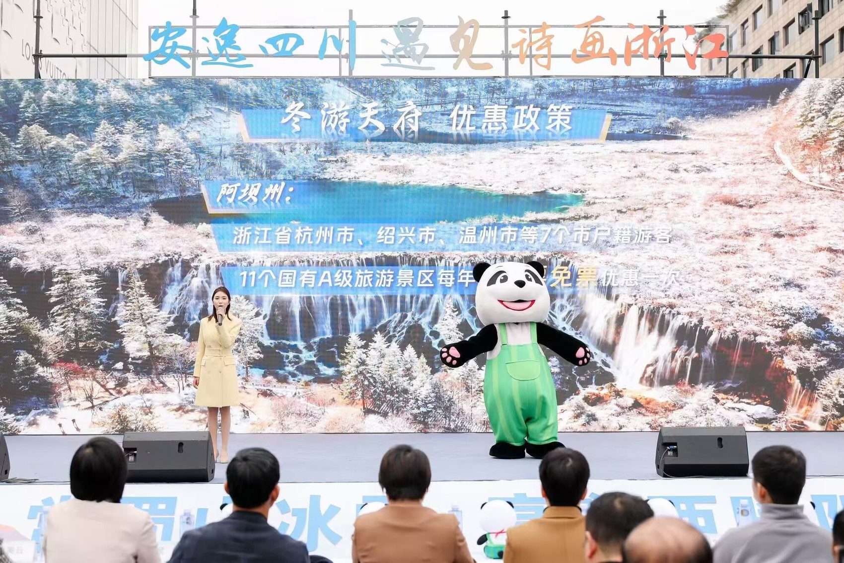 “欲把西湖比西子,淡妆浓抹总相宜。”活动开场,以苏东坡串联起四川与浙江的千年情缘。四川文旅吉祥物“安逸熊猫”携手四川多地的文旅推荐官们,通过乐游天府、冬游天府、暖心天府三大篇章,邀请浙江游客沿着四川25条旅游风景道,观天下山水之绝、览绿色生态之美、尝麻辣鲜香之味、享热情待客之道。
