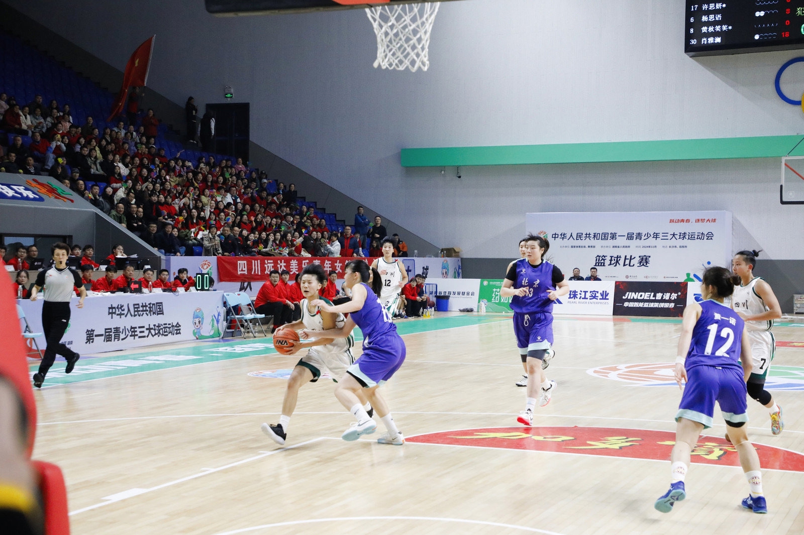 11月25日,首届全国青少年三大球运动会女子篮球比赛展开半决赛的争夺。四川女篮凭借第三节比赛的出色发挥,以112:83击败对手北京队,顺利晋级四强。