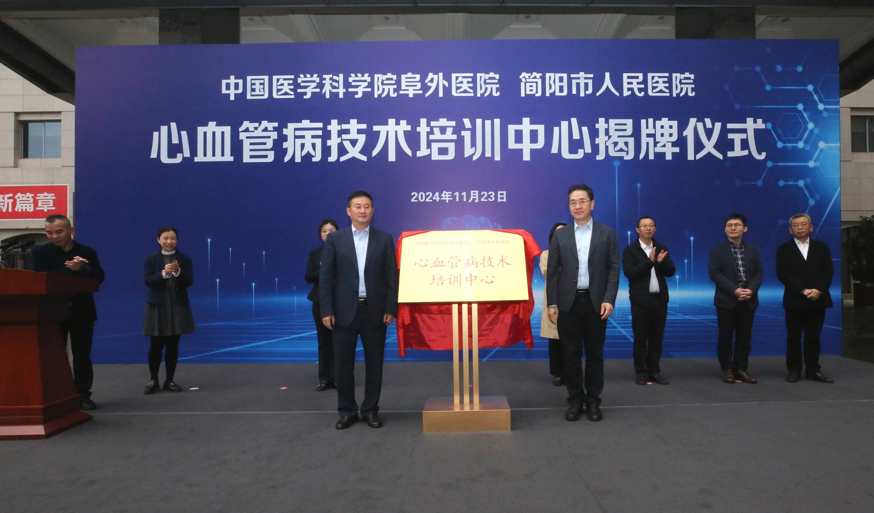 11月23日上午,中国医学科学院阜外医院简阳市人民医院心血管病技术培训中心举行揭牌仪式,这意味着国家级心血管优质医疗资源将在简阳市扎根安家,将推动简阳心血管病医疗水平的发展,为本地及周边患者提供更优质、更先进的心血管疾病诊疗服务。