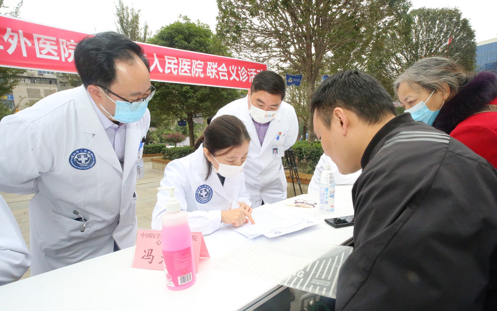 在简阳市人民医院医院门诊广场,阜外医院专家与简阳市人民医院心内科、心外科医生共同开展心血管疾病义诊活动