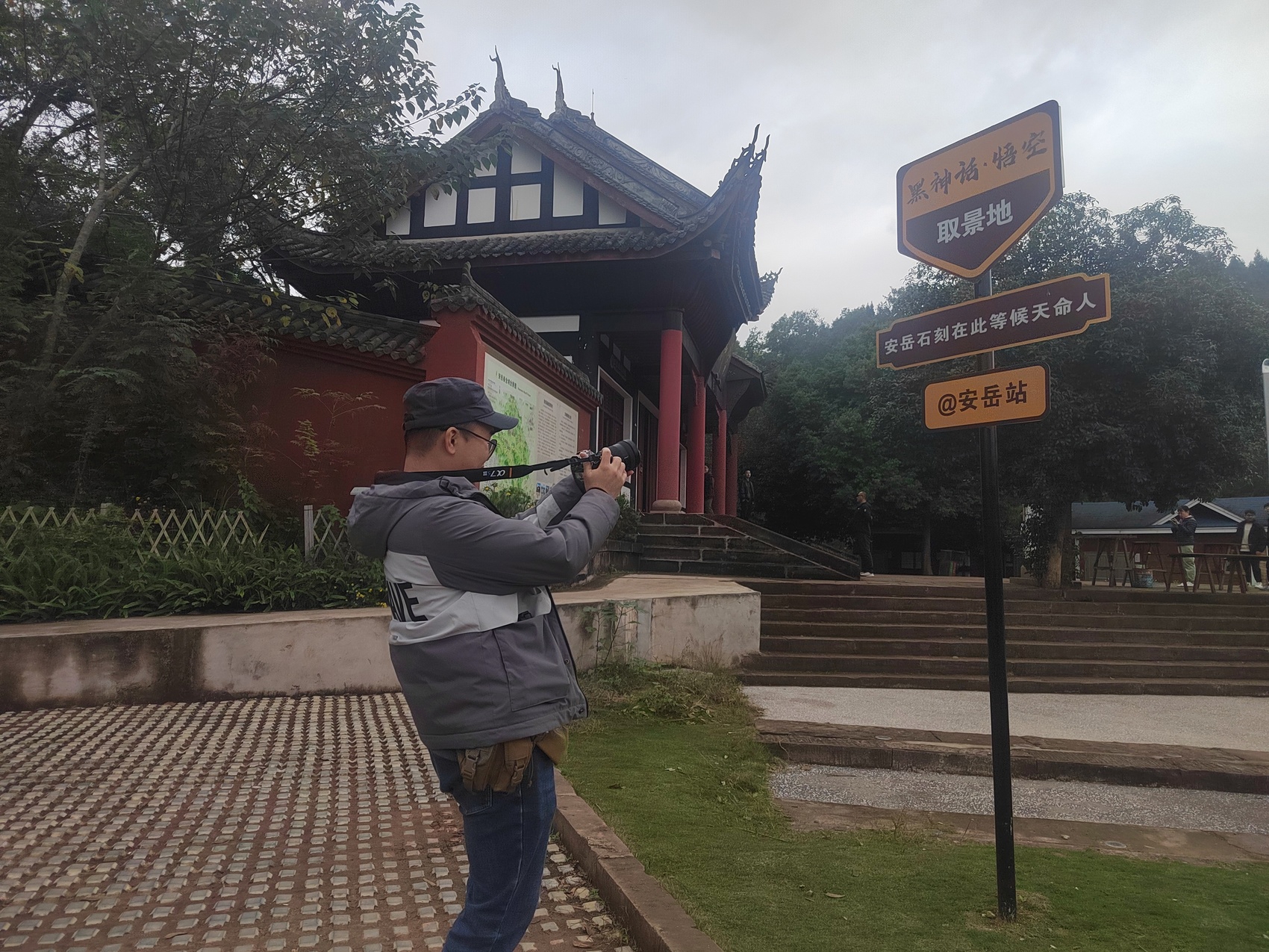 游客在安岳县卧佛院拍照打卡。张斌摄