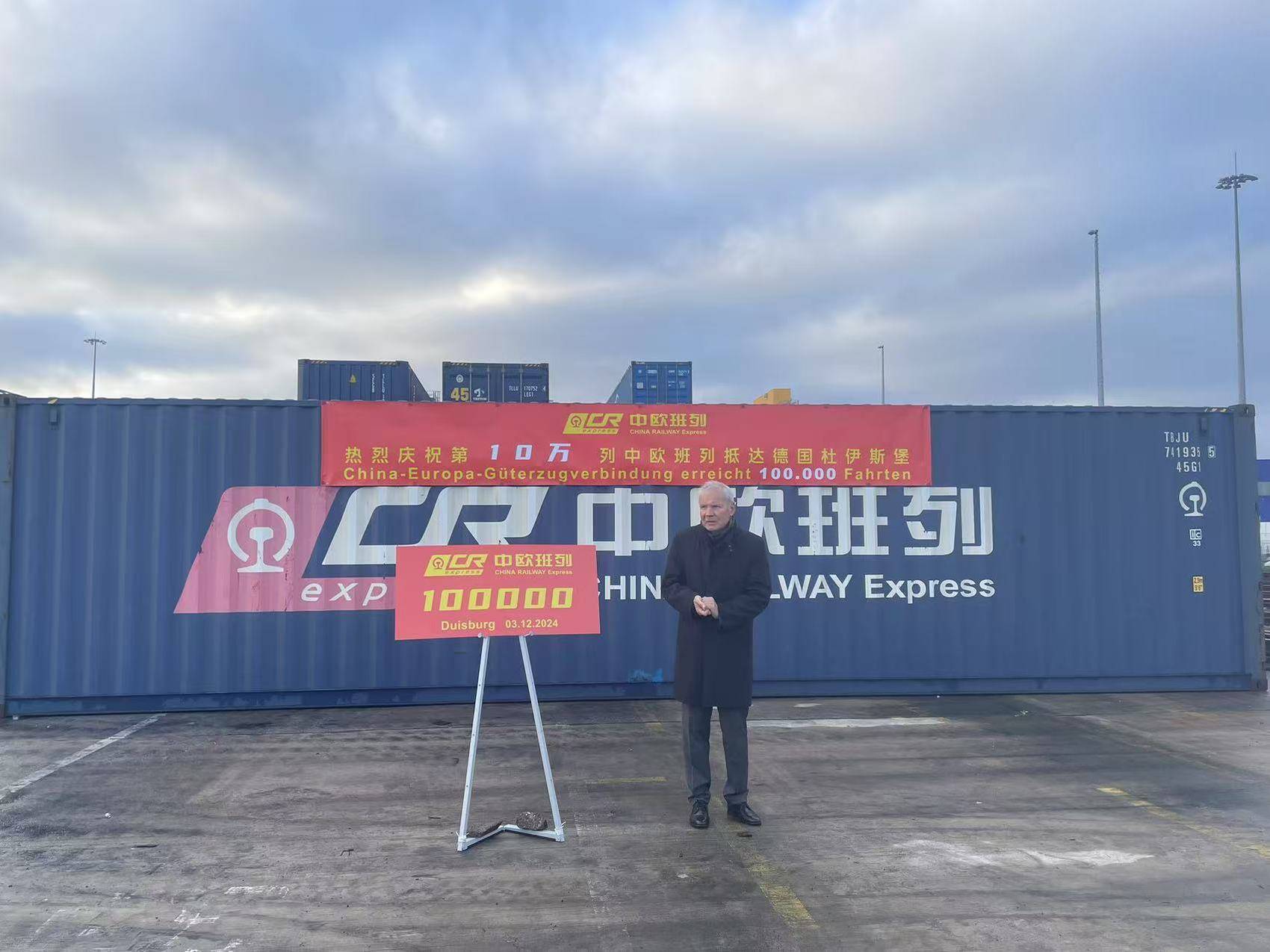 德国时间12月3日9时10分,从中铁集装箱重庆中心站开出的X8083次中欧班列,顺利抵达德国杜伊斯堡。12月3日上午,第10万中欧班列接车仪式在德国杜伊斯堡多式联运场站举办。