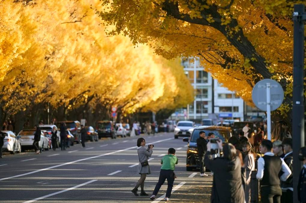 12月2日,人们在日本东京欣赏秋色。