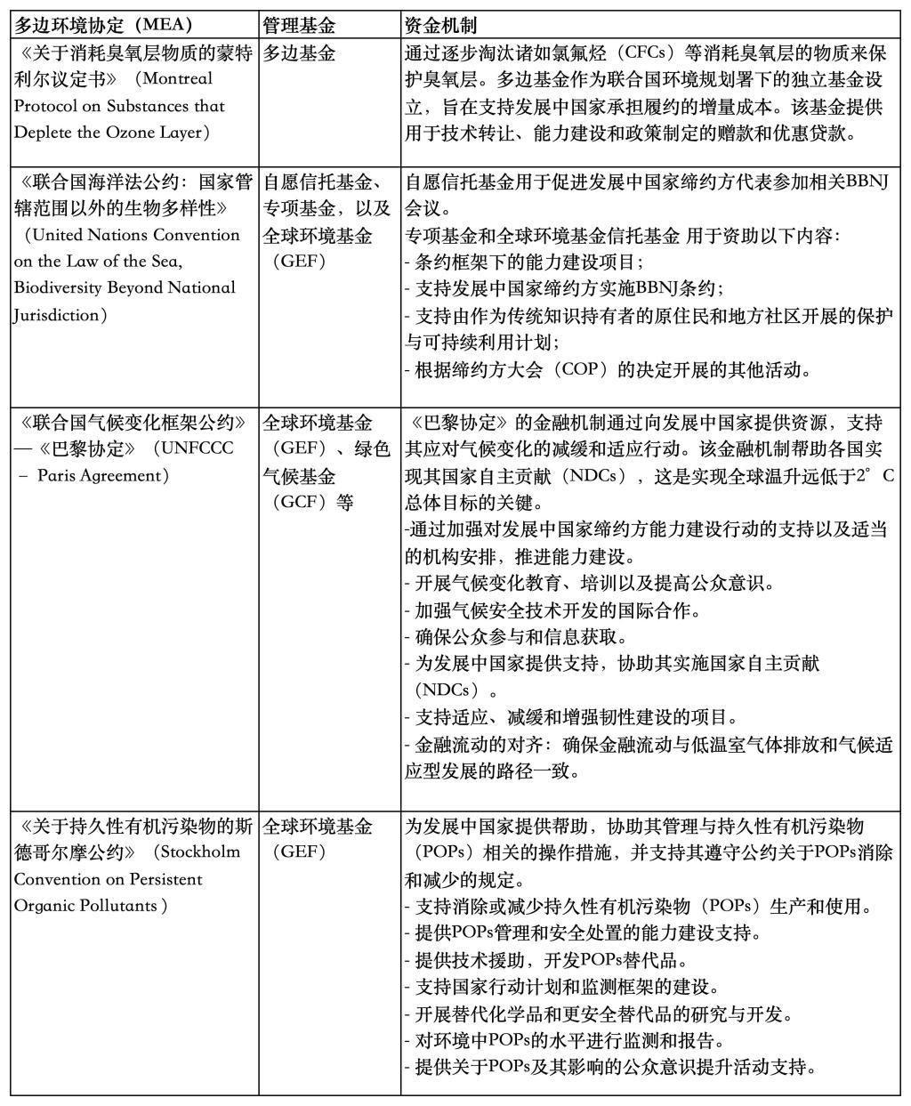 表1 具有代表性的多边环境协定及其资金机制(来源: INC5 Advance Expert Group 1 Co-chairs Report)