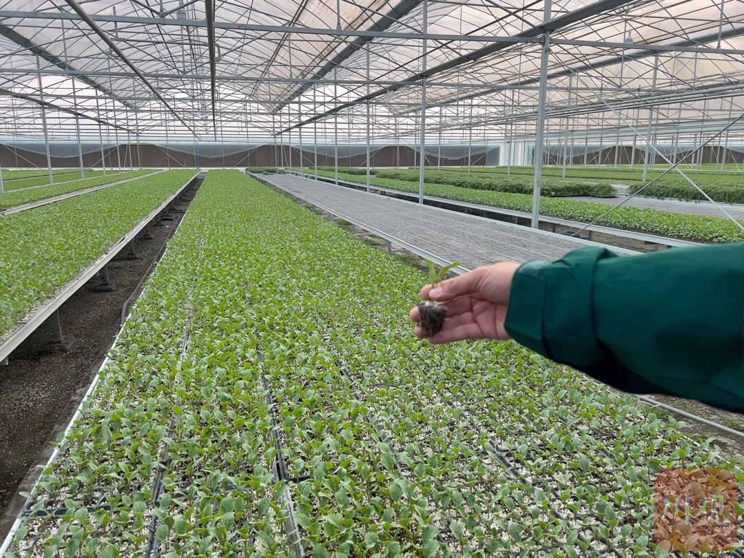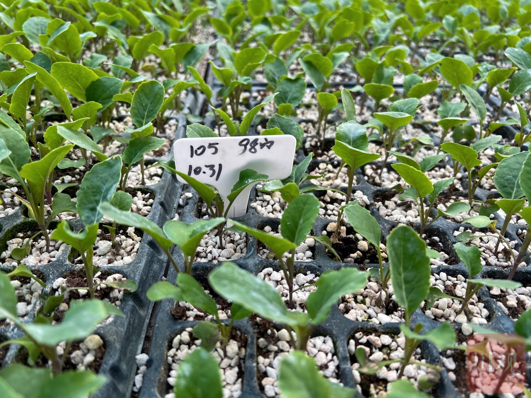 “高效”是另外一个关键词。举个例子,育苗基地内的一亩地可以培育30万株花菜苗,而这30万株苗子又能覆盖150亩的土地。郑贤根介绍,“在7至9月的出苗高峰期,我们平均25到30天,就可以出一茬苗,这缩短了蔬菜的生长周期。”