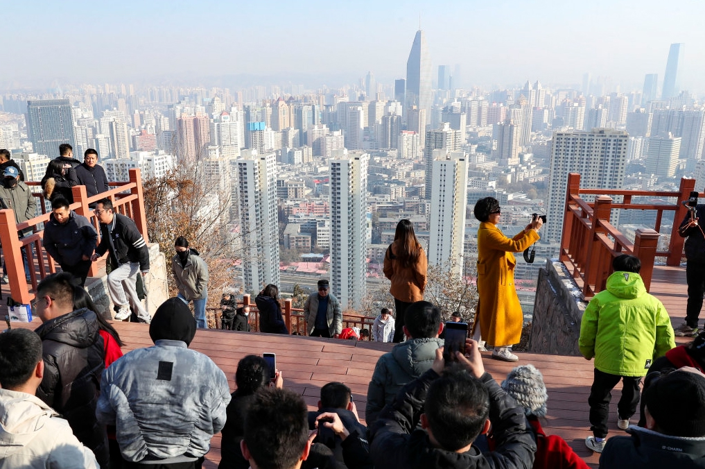 12月3日上午,游客在兰州市兰山公园一处观景平台游览、拍摄。