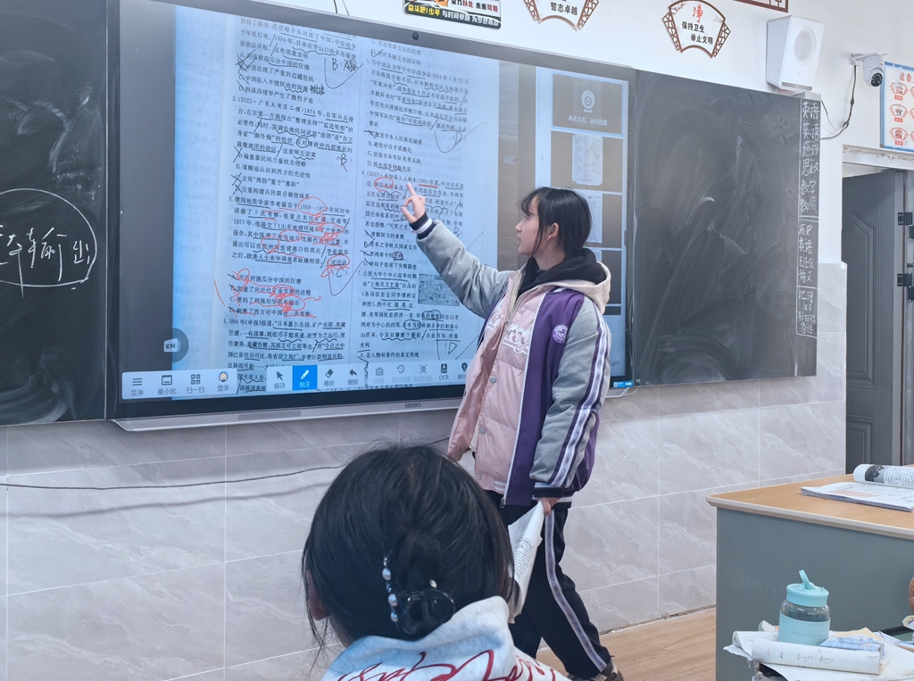 “小先生”试题评讲课上,学生柏莉红正为同学们讲题。