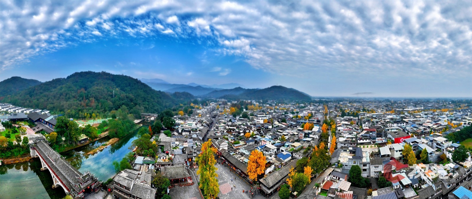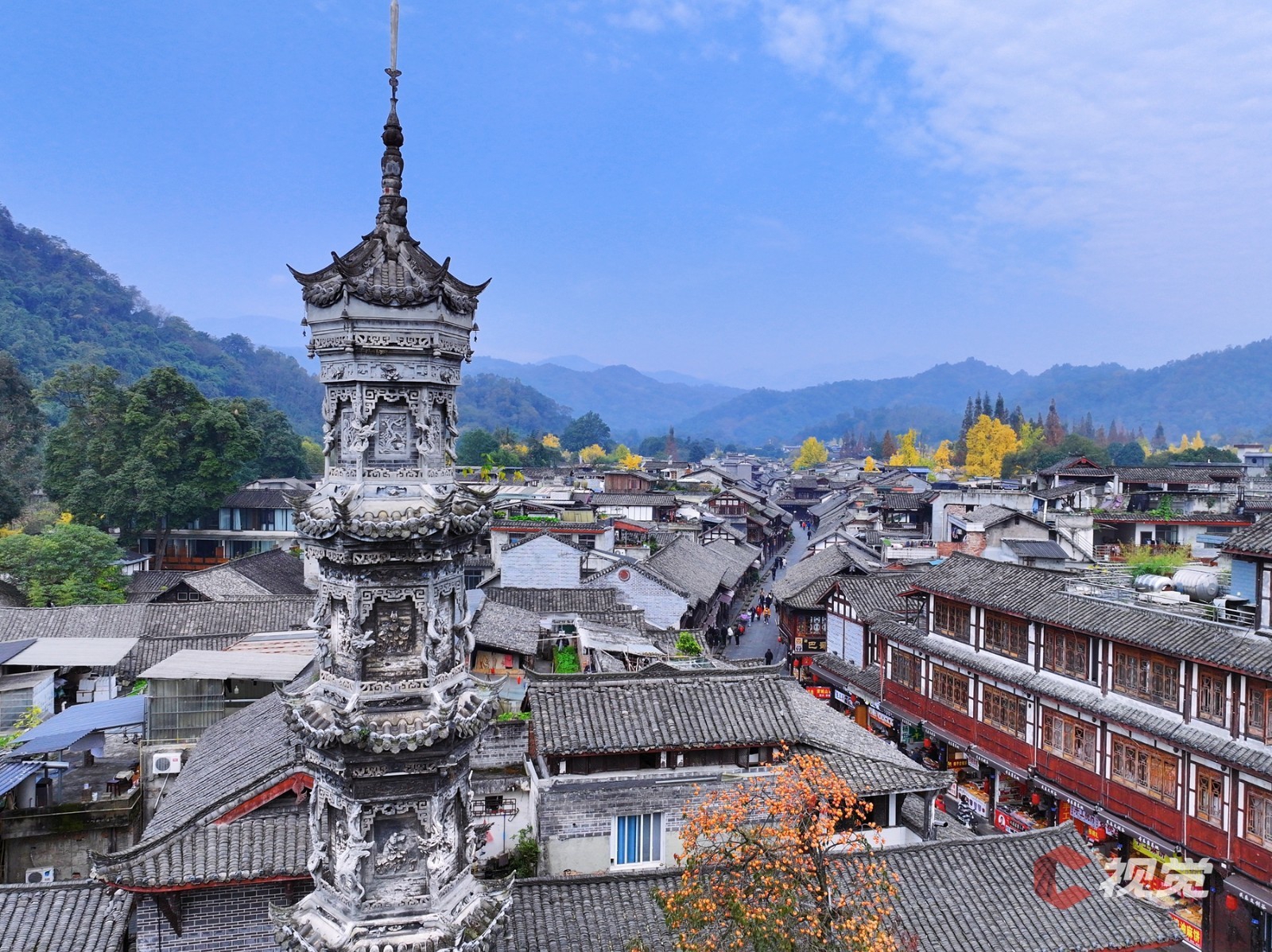 街子古镇字库广场银杏已黄。C视觉摄影师 朱志宏