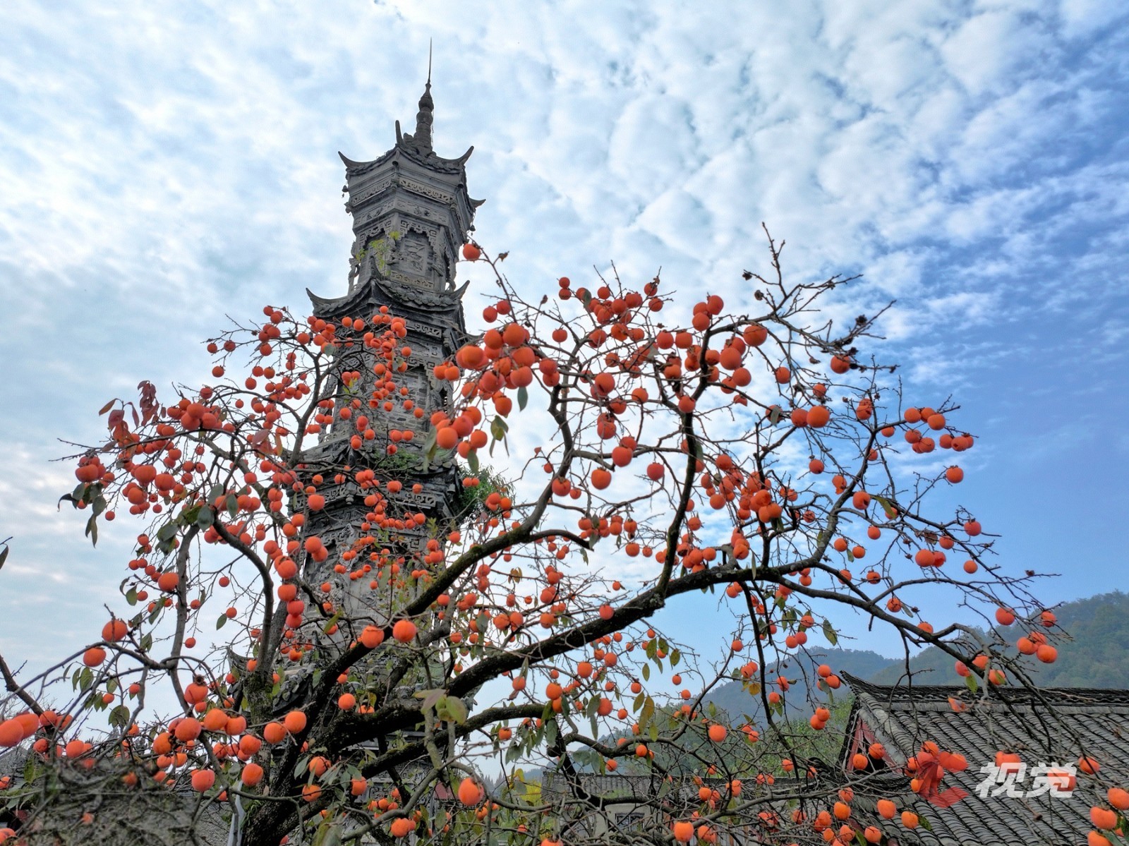 字库塔旁柿子树火红。C视觉摄影师 杨武
