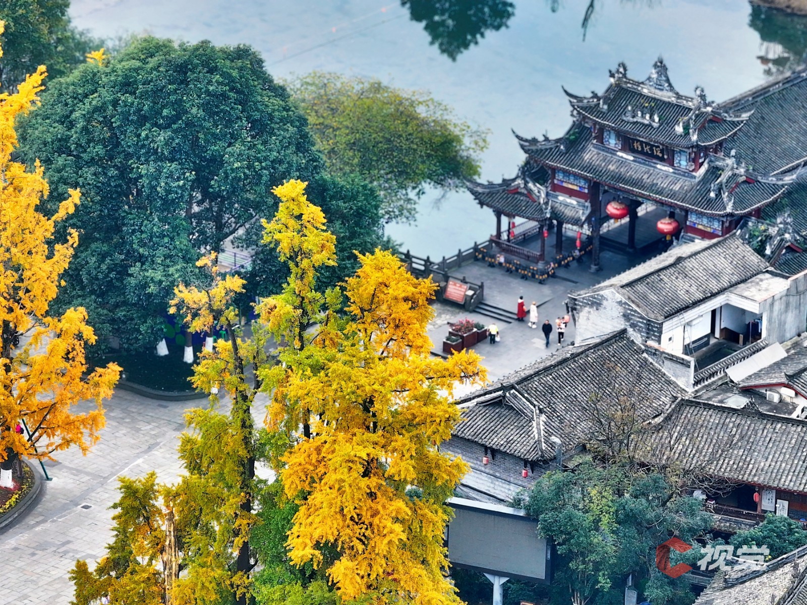 金黄银杏为街子古镇增添了灵动的色彩。C视觉摄影师 郭迎伟