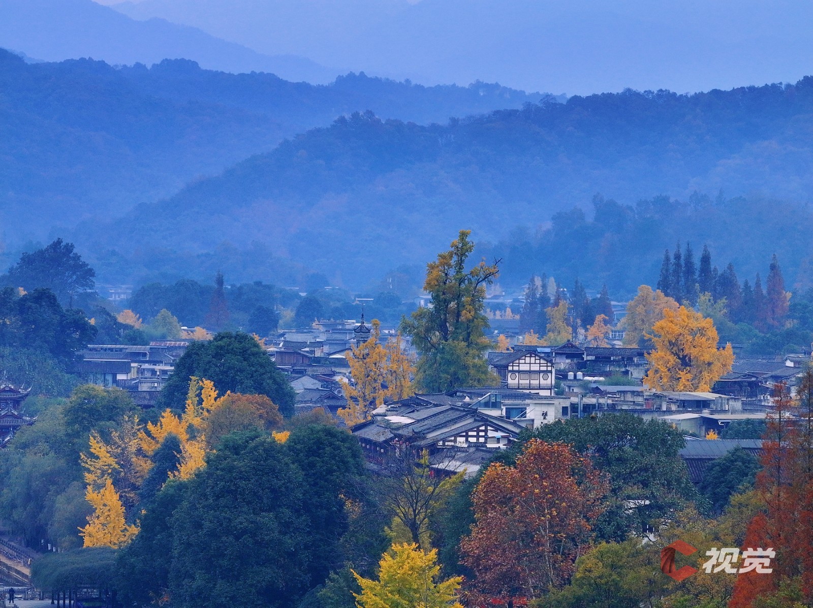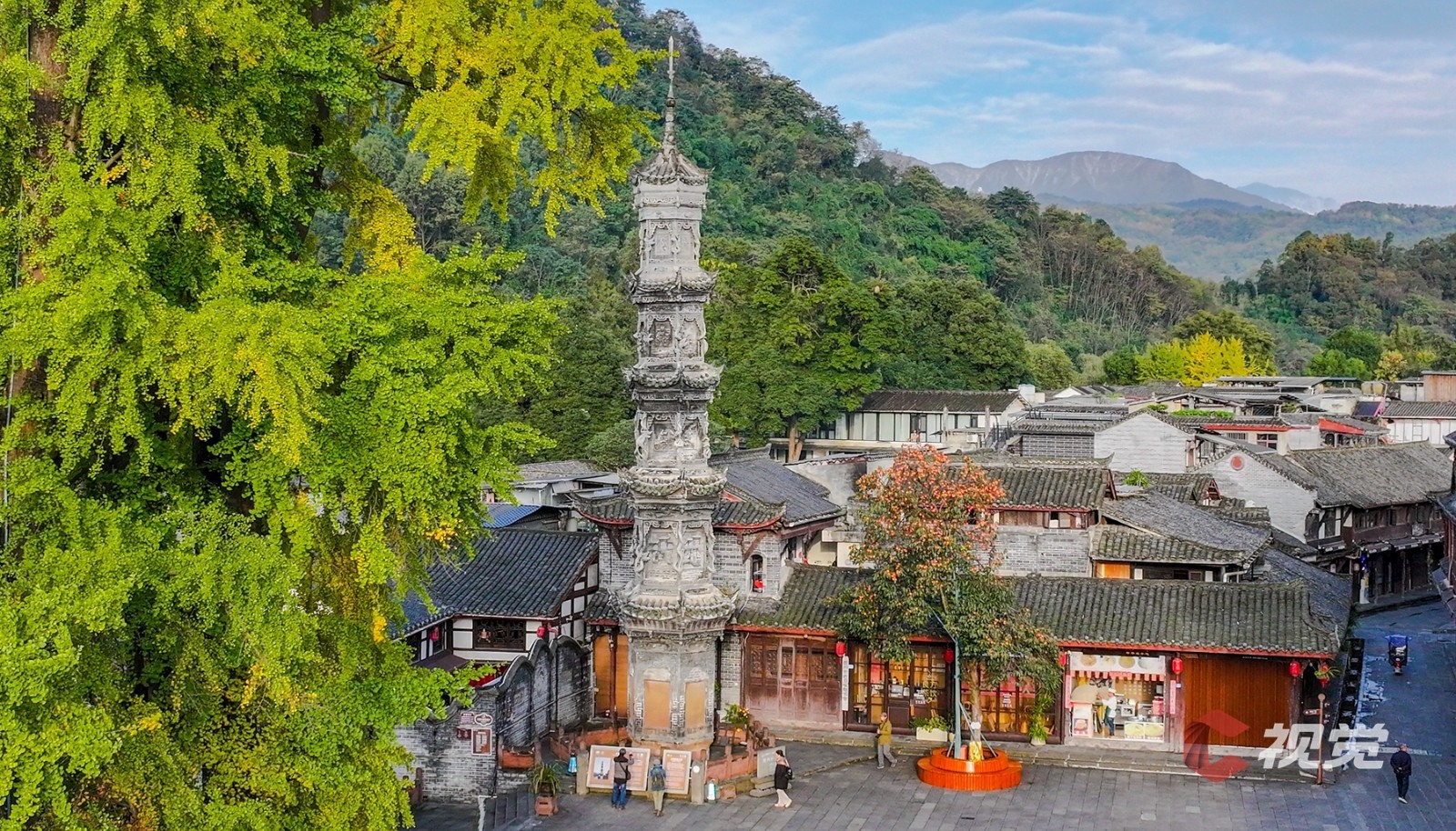 初冬季节的成都崇州街子古镇,在古朴建筑和街道中间,金黄的银杏、火红的柿子树都纷纷染上了鲜艳的色彩,在冬日暖阳下更显闲适与安逸。行走在小桥流水、远山古塔、青砖黛瓦间,感受独具成都韵味的烟火人间。