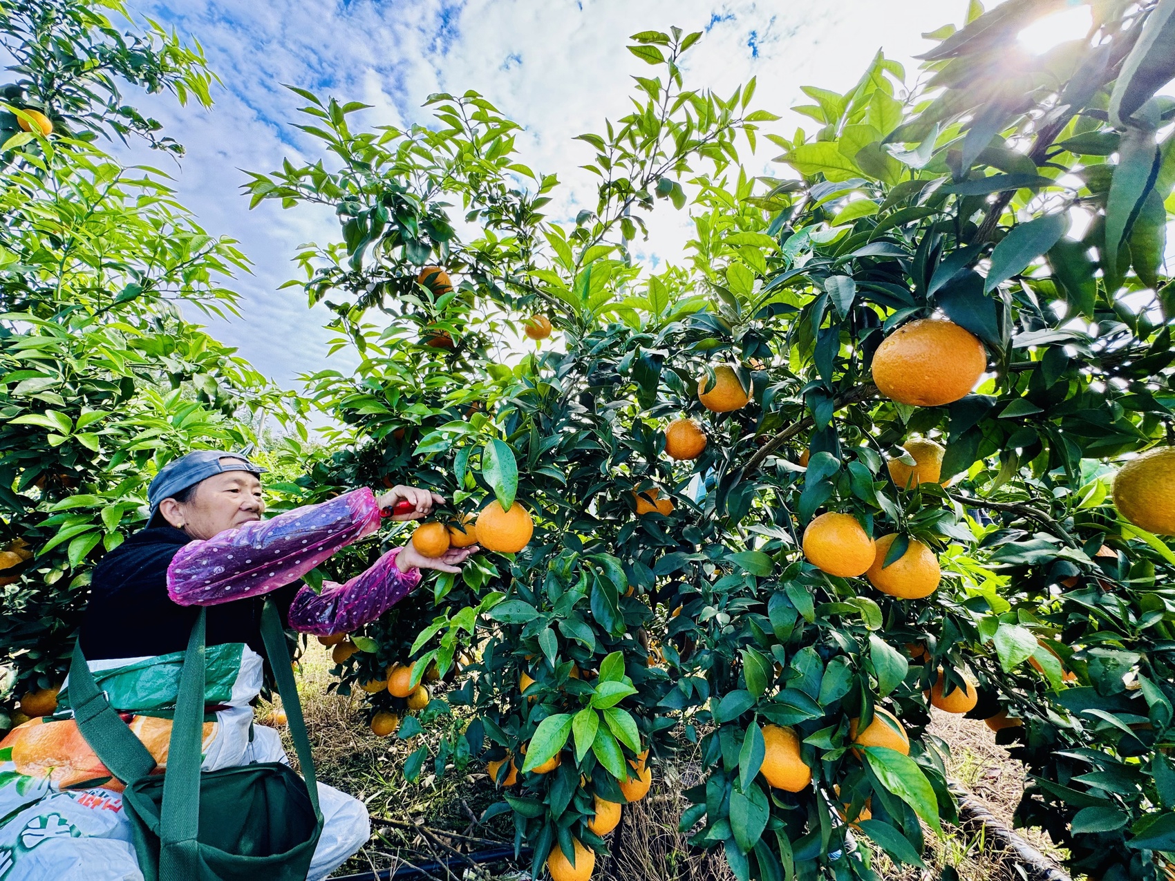 万亩果园里,一株株错落有致的柑橘树被金黄果实压弯了腰,空气中,橘香味肆意沁人心脾,惹人垂涎。果农们手持剪刀穿梭于橘树间,将一颗颗黄澄澄的果子从树上剪下放入背篓中。