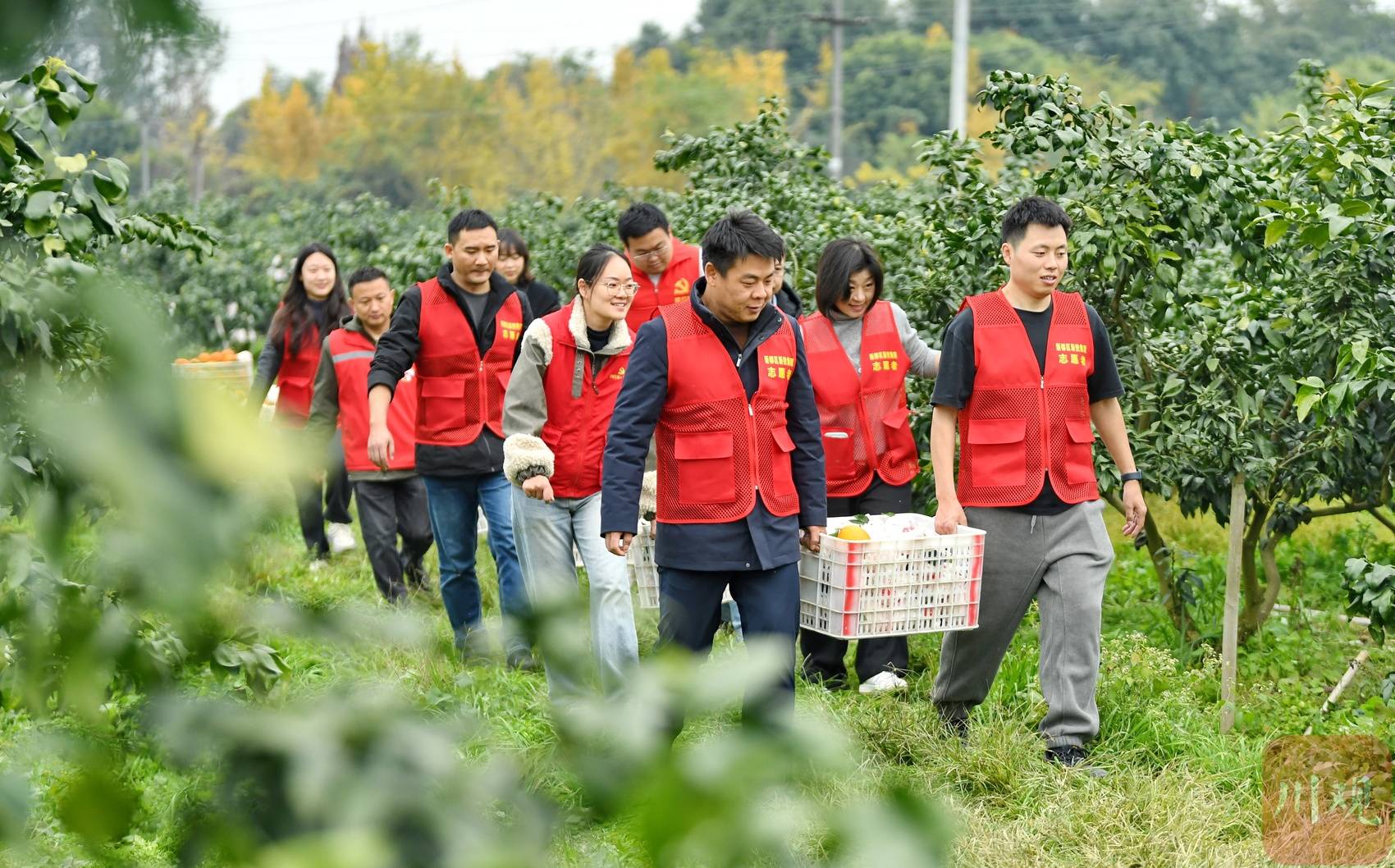 12月5日,成都市新都区斑竹园街道升庵村,大片黄澄澄的爱媛橙挂满枝头,来自成都市新都区纪委监委派驻新投集团纪检监察组的志愿者们,一边帮着农户将新采摘的橙子搬运、分拣、装车,一边了解惠农政策落实、农业补贴兑现等情况。当天是第39个国际志愿者日,志愿者们用忙碌的身影点缀果园。