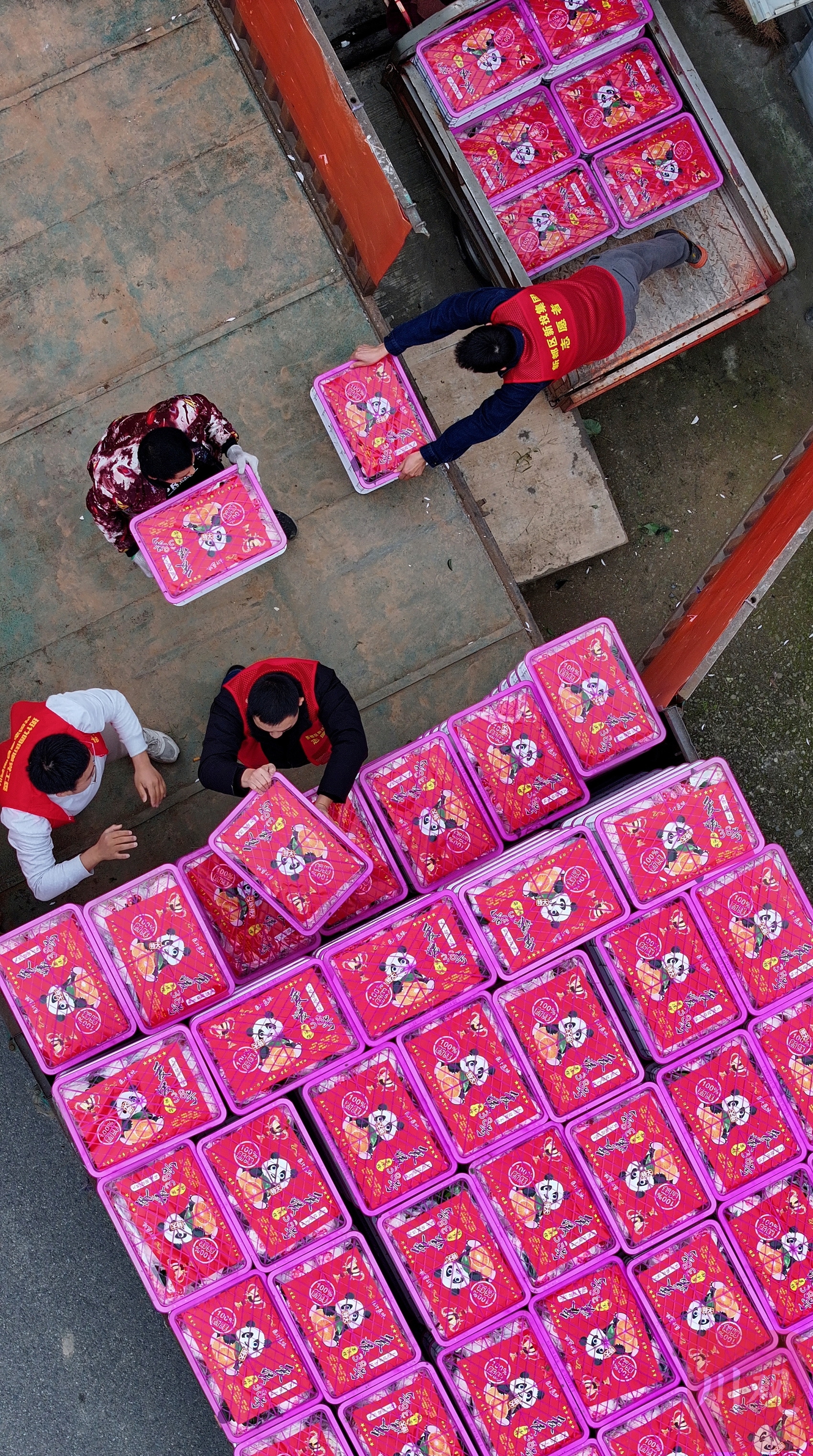2024年12月5日,在成都市新都区斑竹园街道升庵村橘之缘柑橘园,来自成都市新都区纪委监委派驻新投集团纪检监察组的志愿者帮农户搬运爱媛橙。