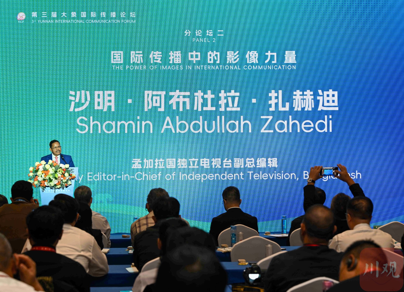 分论坛“国际传播中的影像力量”发言中,孟加拉国独立电视台副总编辑沙明·阿布杜拉·扎赫迪作主旨发言。