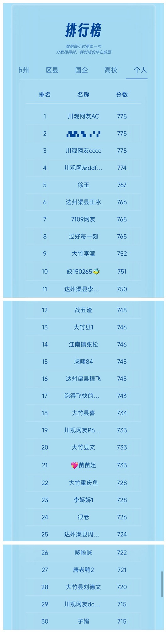 “虽然我答题积分不高,暂时还没进入个人排行榜的前200,但是我了解到很多四川和台湾之间交流合作的知识,我觉得很有意义!我会继续参与答题,争取闯进榜单!”川观网友ac379f说,通过参与答题,不只加深了自己对两岸关系发展历程的了解,还看到了很多四川台湾交流合作、融合发展的成果。虽然排名不理想,但收获颇丰!