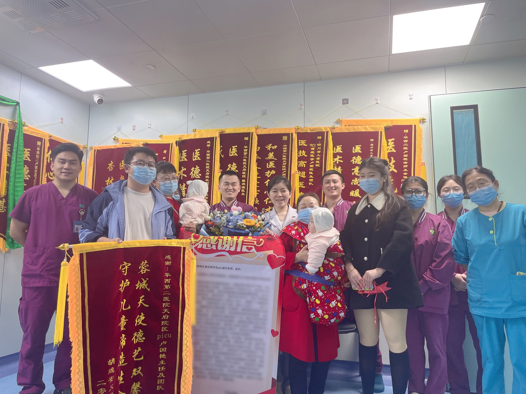 “在PICU,建立患者的信任,唯有靠PICU人的不懈努力和患者家属的口口相传。”卢国艳回忆起一个让她印象深刻的病例。2024年2月28日,出生时仅有850g的29周早产儿出现呼吸困难,入院治疗。患儿自出生后,肺发育不完全,反复感染,曾在其他医院反复治疗仍难以恢复。入院后,一度生命垂危,在PICU团队共同努力下,患儿病情好转成功出院。然而时隔2月,该患儿不幸再次感染入院。该次病情除肺部感染重,还合并持续肺动脉高压,经过PICU全力医治,患儿再次平安回到父母身边。后期在PICU、呼吸科门诊随访,小患者最终顺利脱氧,健康成长。