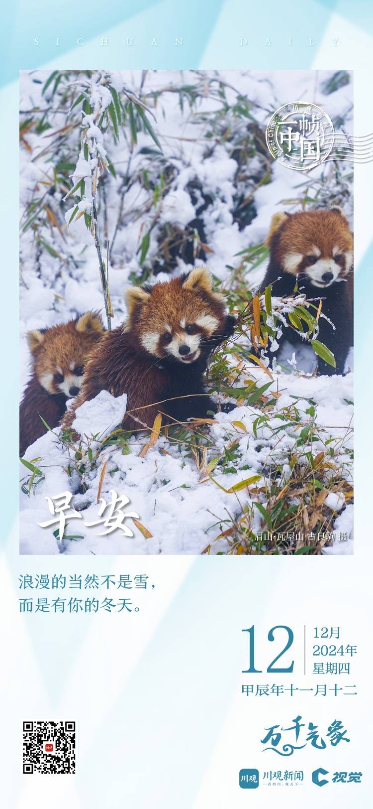 冬天的瓦屋山,山林披上雪衣,银装素裹,整个景区宛若童话世界,吸引众多游客前来赏雪。除冰雪风光,游客还能在这里邂逅松鼠、藏酋猴、小熊猫等多种野生动物。这不,在白雪覆盖的竹林间,三只小熊猫正在觅食、嬉戏,煞是可爱。