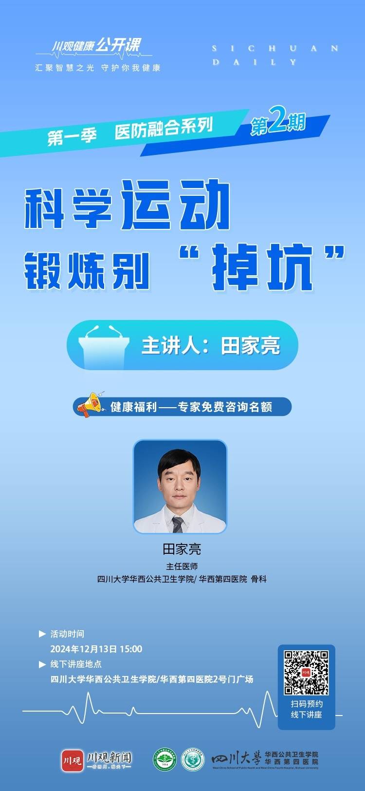 川观新闻携手四川大学华西公共卫生学院/华西第四医院,推出川观健康公开课第一季——医防融合大讲堂,面向有健康预防诉求的健康人群、亚健康人群、康复人群、保健人群、慢性病人群,旨在提升和塑造公众主动健康的意识,把对疾病或健康隐患的处置关口前移,真正做到提前预防,防治结合,不断提升全民健康素养。