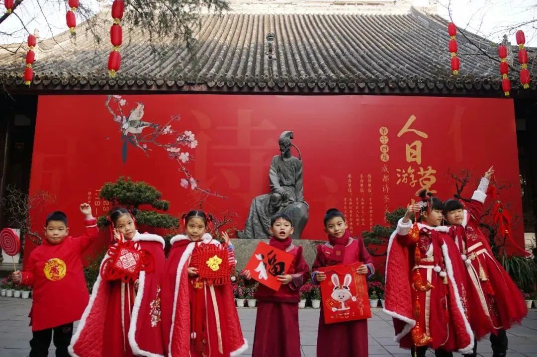 每年春节,在成都杜甫草堂博物馆开展的“人日游草堂”系列文化活动是成都人气最旺的传统节会之一。