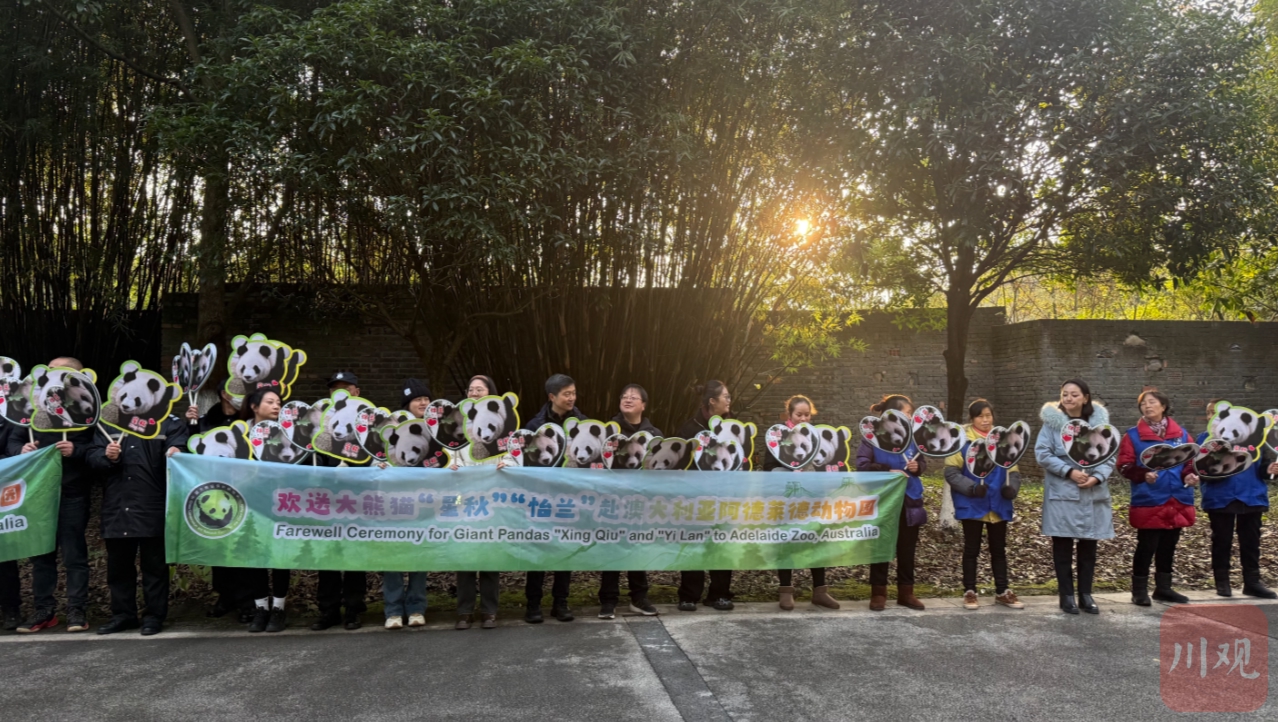 12月14日上午8点,大熊猫“星秋”“怡兰”欢送仪式在都江堰举行。随后,两只大熊猫从中国大熊猫保护研究中心(以下简称“熊猫中心”)都江堰基地出发,赴澳大利亚开启新一轮大熊猫国际交流合作。