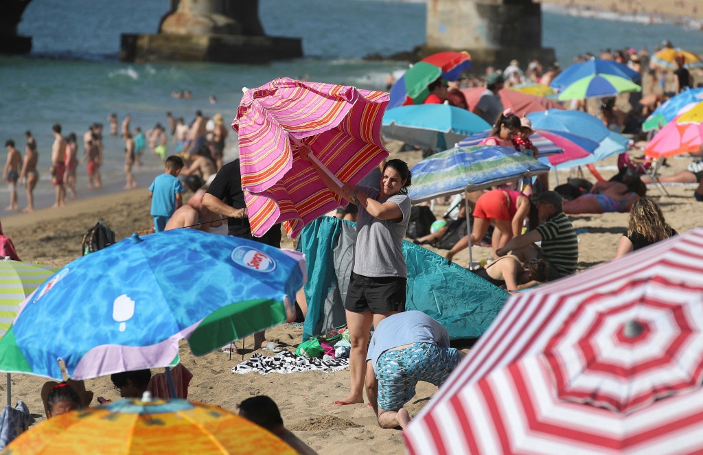 12月19日,人们在智利比尼亚德尔马的海滩消暑。