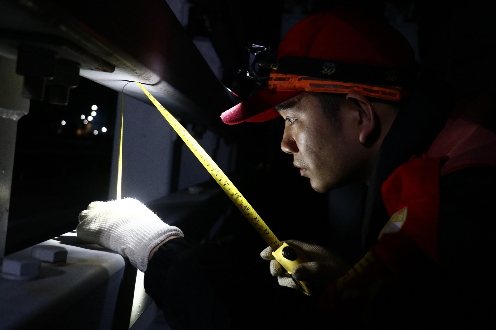 当天23时,周政整理好队伍,在成自宜高铁通道门外依次进行人员点名、工具清点、作业分工等工作。当天他们要对宜宾临港长江公铁大桥进行全面检查,这是每月一次固定的重要任务,随着临近年底,也恰逢通车一周年,对大桥的检查频次也增加了不少。