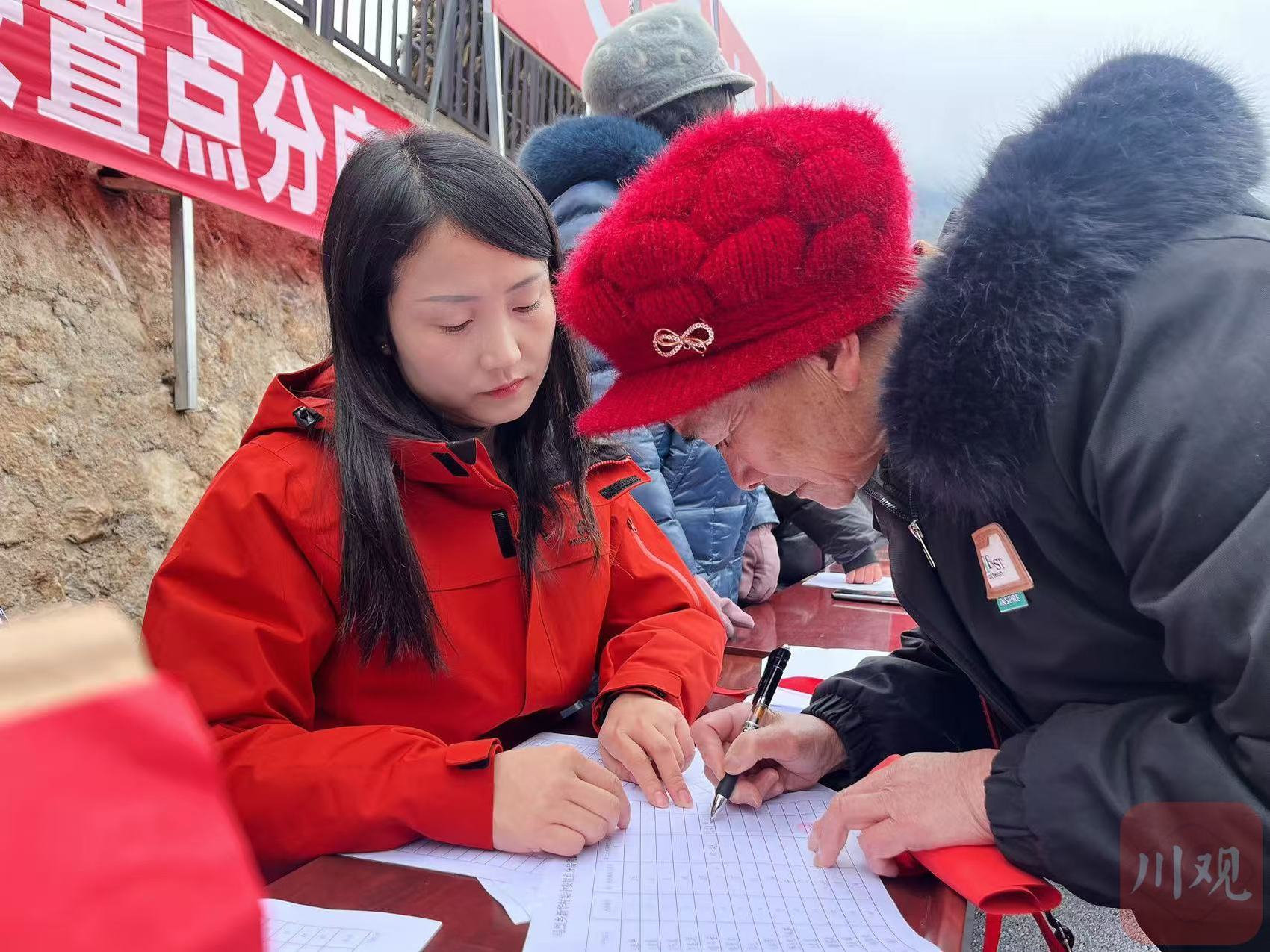 村民在填写分房信息。廖诗雪/摄
